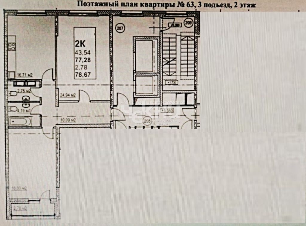 | Площадь (кв.м.) | Общая: 78.67 Жилая: 43.54 Кухня: 16.71 Комнаты: 24.94+18.60 78.67 / 43.54 / 16.71 |